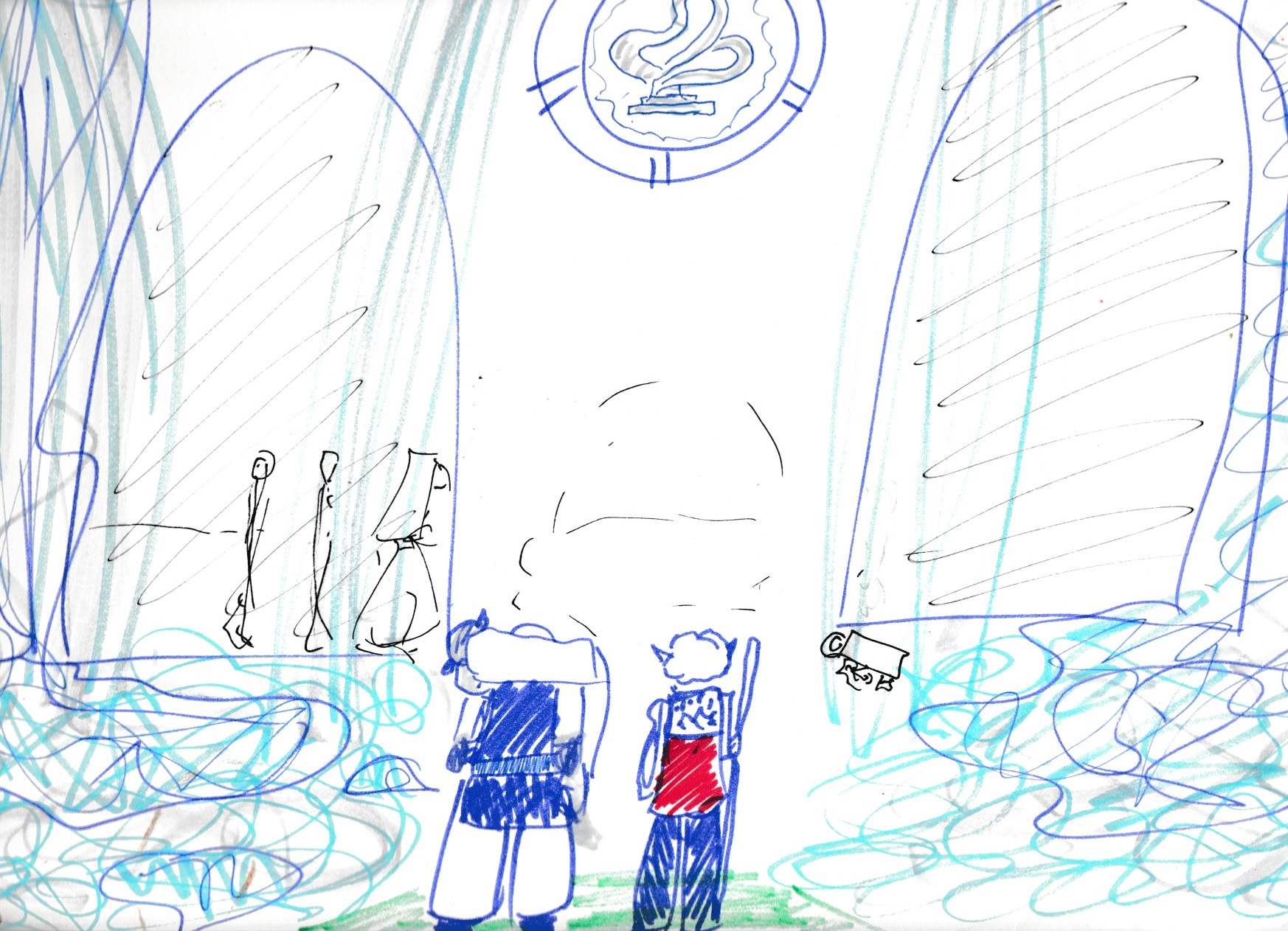 Date: 06/27/2017 Where dream occured: My home in Faerie Interpretation included: Yes In the great green room There was a bookcase and four windows and a picture of The sickly dragon of flame And a roaring fireplace And a table and a bed And a place to rest your head There was more, of course, but It needed to start its discourse So, the room had its views, and the Awakened, one assumes were soon stirring from their slumber... [Here is how the skerry looked from above, when all was well] We all woke up in the skerry, wearing dream-forms. Orion and Cressida recognized the room as one from recent dreams, and recognized the dragon. Both had been to the room about a week before, and Cressida had been there in her dreams more times in the past. Melethiell was in the Dreaming for the first time. Orion mentioned the windows had not been there the last time. The west window held a view of great plains, with dips and valleys, and long hillsides, all waving with a mixture of long grass here, wheat there, and blue skies that travel into the horizon. No sound came from the window. Orion said that the dragon (who is believed to be Lucien's Dragon, a new form of an adventurer that some once knew) said the green room was made by the Dreamer, Masks, Sky and Space. Melethiell found a book and was able to make out a few pages, which I have reproduced here to the best of my ability. Melethiell noted that the book was about, among others, me, and indeed it involved a day where I was summoned to try and help Ezmerelda by Balthazar, which I will try to detail elsewhere. She then looked into a crystal ball, what comes next I'm going to put as my notes immediately after waking up said it, even though they are kind of incoherent, in case there is wisdom to be gained. At first, nothing happens, and then the nighttime sounds of peepers can be heard. Crickets. Far away, and yet near. The green room's wall, they flucuate with colors, from green, all the way to dark blue, and every hue in-between back to green. There's a set of words, something being said. Something being repeated. Rules? Regulations? The bears, they are still muzzled, but they are actually shifting in their seats, shifting in the painting, as music begins to play. The griffin, it glides gently in and out of view around and over the moon, and whenever the frame would obscure its turn, it still comes back, flapping lazily along. The oil lamp, its flame flickers and dances. 10 fingers, 10 laws that I live by. and the music begins to slowly fade out, too. something about musicians and life... After this, the room returned to its more stationary look, as when we first woke up. Orion and Cressida recognized the song, and said they understood more this time. They were all rules of survival, something to counter the calming music. Orion caught more of them than he had before. Melethiell and Cressida looked under the bed, and were delighted to find that while it was particularly, light-swallowingly dark there, a gray cat came out. The voice of a woman I once knew, which I take as the voice of the sickly dragon within this dream, spoke for the first time, saying That is no ordinary domesticated creature. The cat also attracted the attention of the sickly dragon's picture. As the cat became acquainted with some of the dreamers, it was shown to have six limbs, not four, and a little red bow behind one ear, and later we noticed two spiked tendrils emerging from its front shoulderblades. The voice continued, One of these creatures, in reality, lies with the Knight's Squire. I believe this means it is the kitten of a Displacer Beast. The Message, however, is still here. In a way. As many months as there are in a year, I can answer questions of thee. You are four. You may choose to share, or split equally, or have one speak, or as you wish... but only Months of the Year is the limit. I brought up that some consider there to be 13 months in a year, but this was shot down. As we considered what to ask, I examined a bottle with a curious label that we had not been able to decode. It contained a viscous liquid. I concluded the label, written in a script I do not know, meant "T'et'ulinyi." It reminds me of "Tiledike," meaning Belief in an old language, but no meaning for this word came to me. I noticed that the dragon's picture, and its voice, could not have been in the green room when Masks made it. I am uncertain of what to make of this: How much the room was set up to allow just this sort of thing to happen, with the right dreamers, and how much it was a lucky accident, using something Masks had created for entirely different purposes. For our first question, I asked for the meaning of "T'et'ulinyi." I was told it is of a language no longer spoken in the Realms, and roughly means "Drink me." Second question, is there a connection between the Dreamer and Time Snarls? No, though this could be changed by time magic, such as the Time Snarls. Third question, how can we best stop the further creation of Time Snarls? At the current time, locate those in Quar's "Pantheon" and remove them as we can. Fourth question, who is the most vulnerable of Quar's Pantheon? At this point, it is an even tie between Ush'dui and Har'dro [note: I killed Ush'dui a little over a year later]. Orion noted that Ush'dui was connected with a crazy old man who might have worked for her, and someone called the Playking, who might have been a rival of the old man. [See Dream 1-4-19 for another enigmatic Playking reference] Fifth question: How can we find Ush'dui? One can find her toying with minds in The Dreaming, for she plays not in the mortal Realms since her last run-in with strong mages, and the last Dream Master of the time. Sixth question: What is her most exploitable weakness? A most intriguing question, my Master [Lucien] thinks. From him, he wagers that games of the mind are both her strength and her weakness; indeed, the rest of Quar's Pantheon are much more intelligent and wiser than her, a