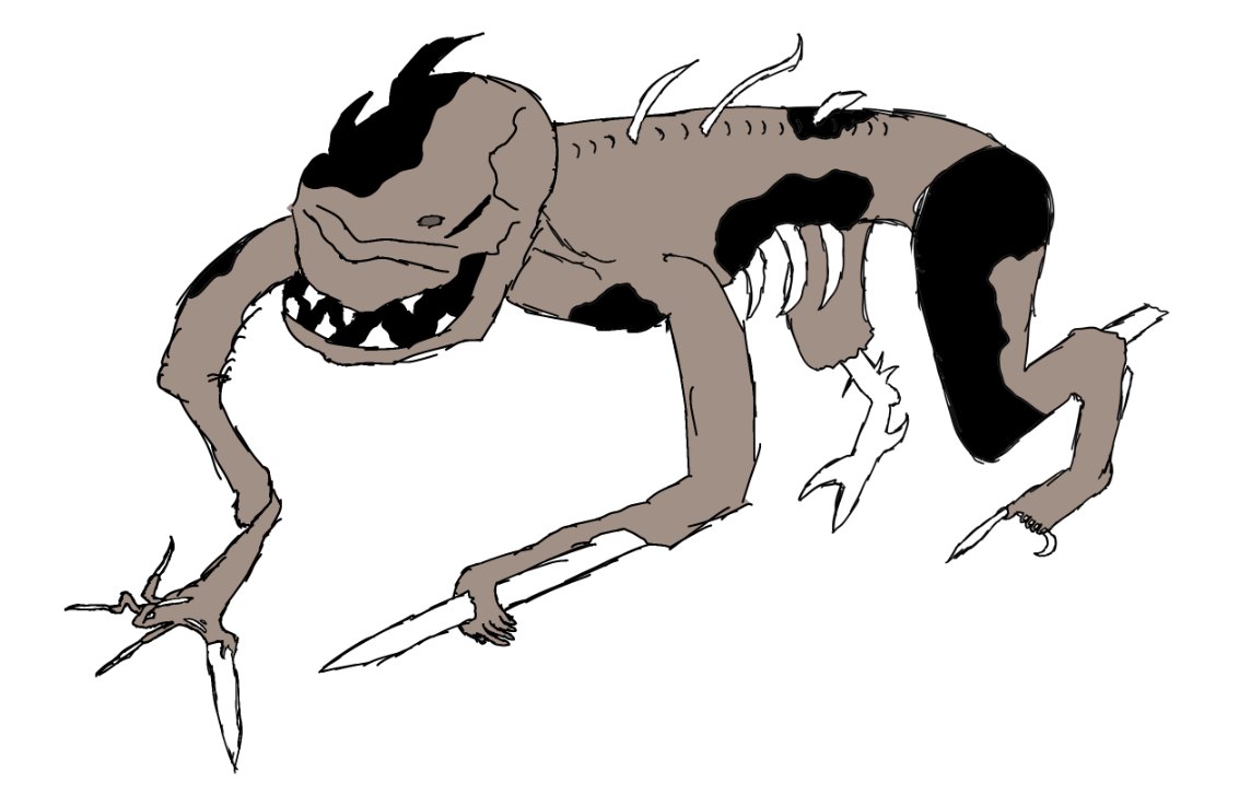 Corrupted Human DrudgeA misshapen former human corrupted by Entropy. It is deformed beyond recognition, broken and emaciated, with its very bones stabbing through its skin and lengthened to be weapons. Its limbs are twisted, and it's covered with patches of a dark black substance. If you see one of these, beware - you'll have to separate all its body parts or destroy its body completely in order to defeat it, as killing blows will merely cause it to become undead. They have been spotted in the woods to the southeast of Chimeron in the area around Castle Requiem. |
