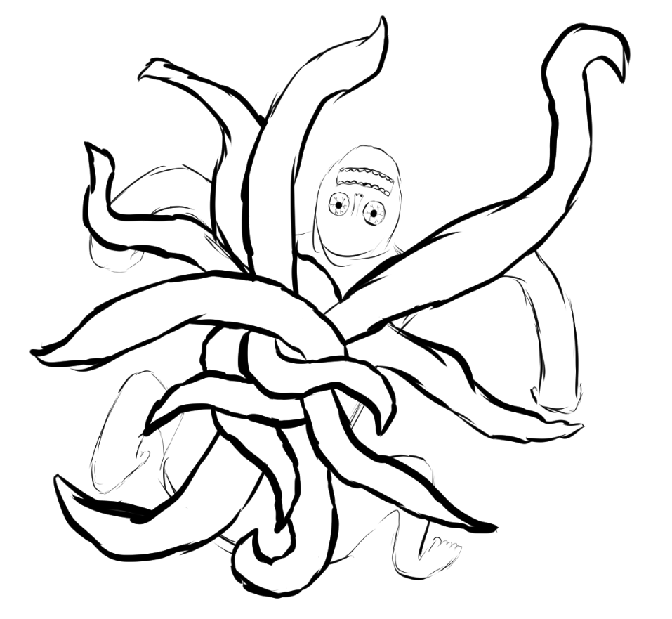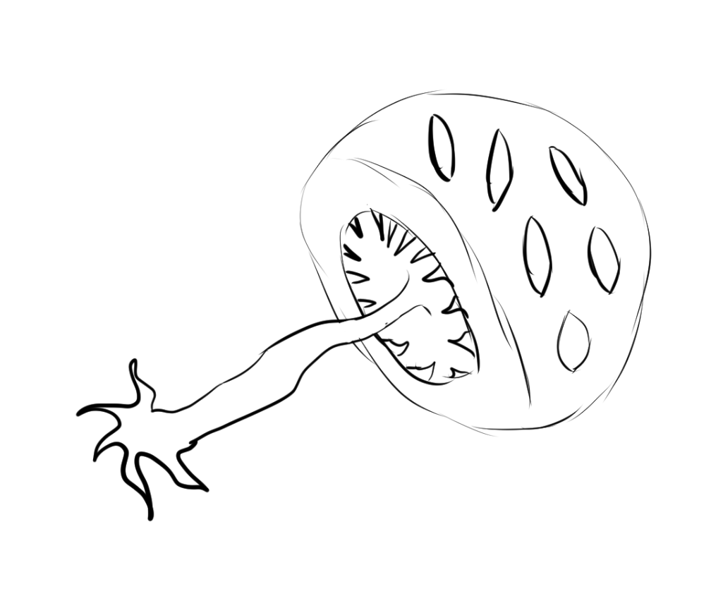 BloodweaverA parasitic creature from Entropy's homeworld that used a form of blood magic to manipulate the blood of its host into limbs for itself. They also weave spiderweb-like structures of blood, and seem to have a close relationship with objects dubbed "Attack Sacks" and the beings that grow within. At one point one was held for study in the basement of Castle Requiem by the Sanguine Siblings, but it eventually escaped when the hideout was abandoned and took one cultist as a host, making use of his "Ironblood" technique to form tentacles as hard as steel.Bloodweaver (with blood limbs): The creature's body without blood: A bloodweaver attached to a host: |